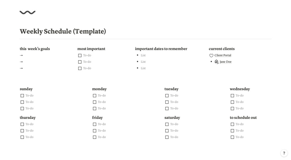 This is perfect for digital artists & graphic designers needing a bit more organization in their life. This template includes both a weekly schedule to jot down everything you need to do along with a client portal that takes you straight into your specific projects.